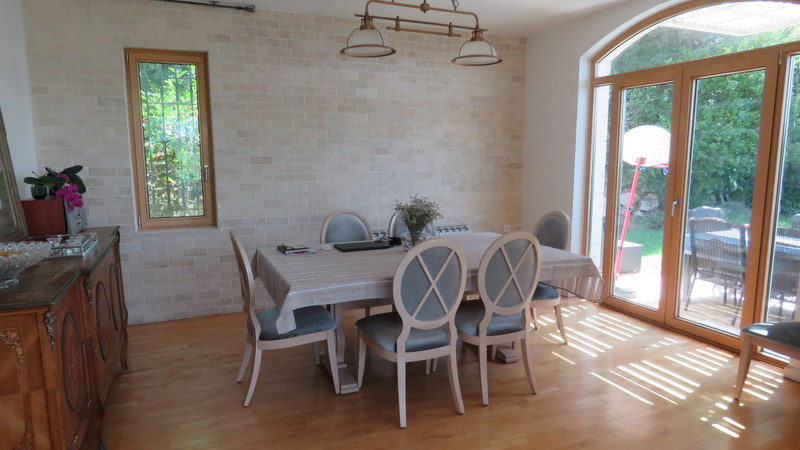 The separate dining area has double doors going out to the garden and terrace, perfect for alfresco dining.